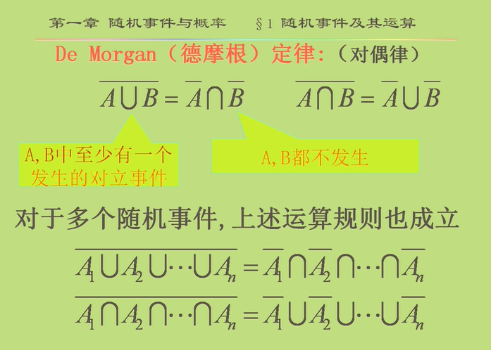 随机事件发生:该事件所包含的一一个样本点在试验中出现。