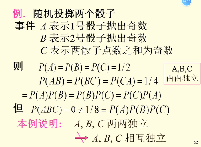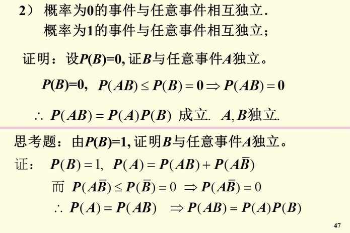 1)定义$A,B$满足$P(AB)=P(A)P(B)$,称事件$AB$相互独立