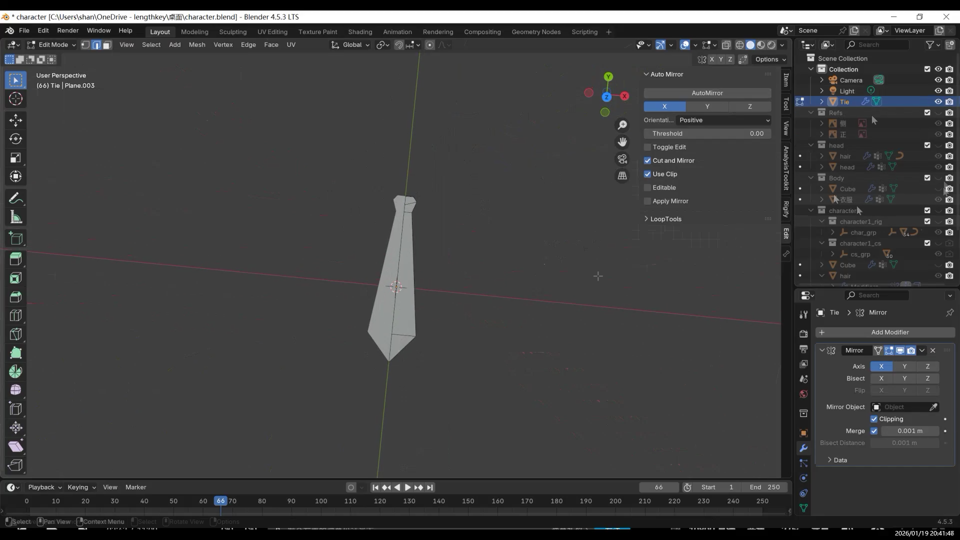 在开始之前,我们需要打开一个已经绑定好骨骼和权重的角色。只要身体本身已经正确绑定,当我们直接从身体上复制出一部分网格来做衣服时,这些顶点对应的权重也会被一并复制到新的网格上。