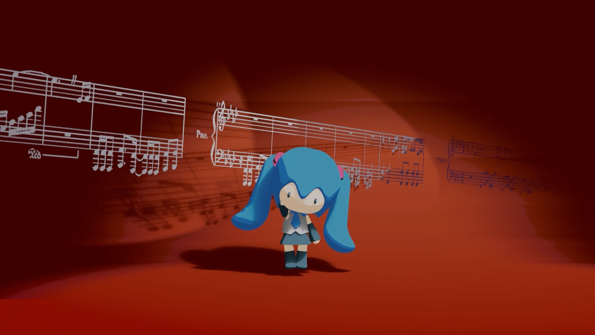 The musical staff animation is created by moving UVs in the shader nodes using a simple formula.